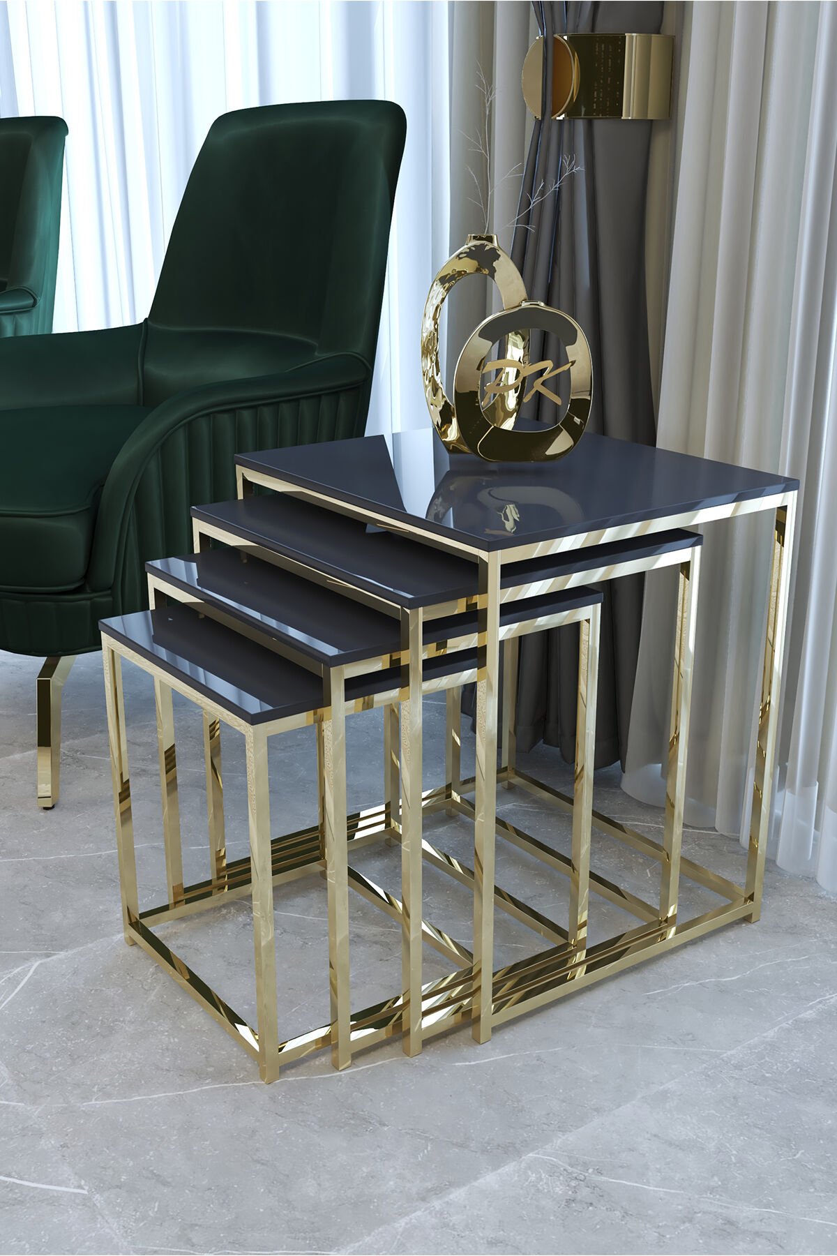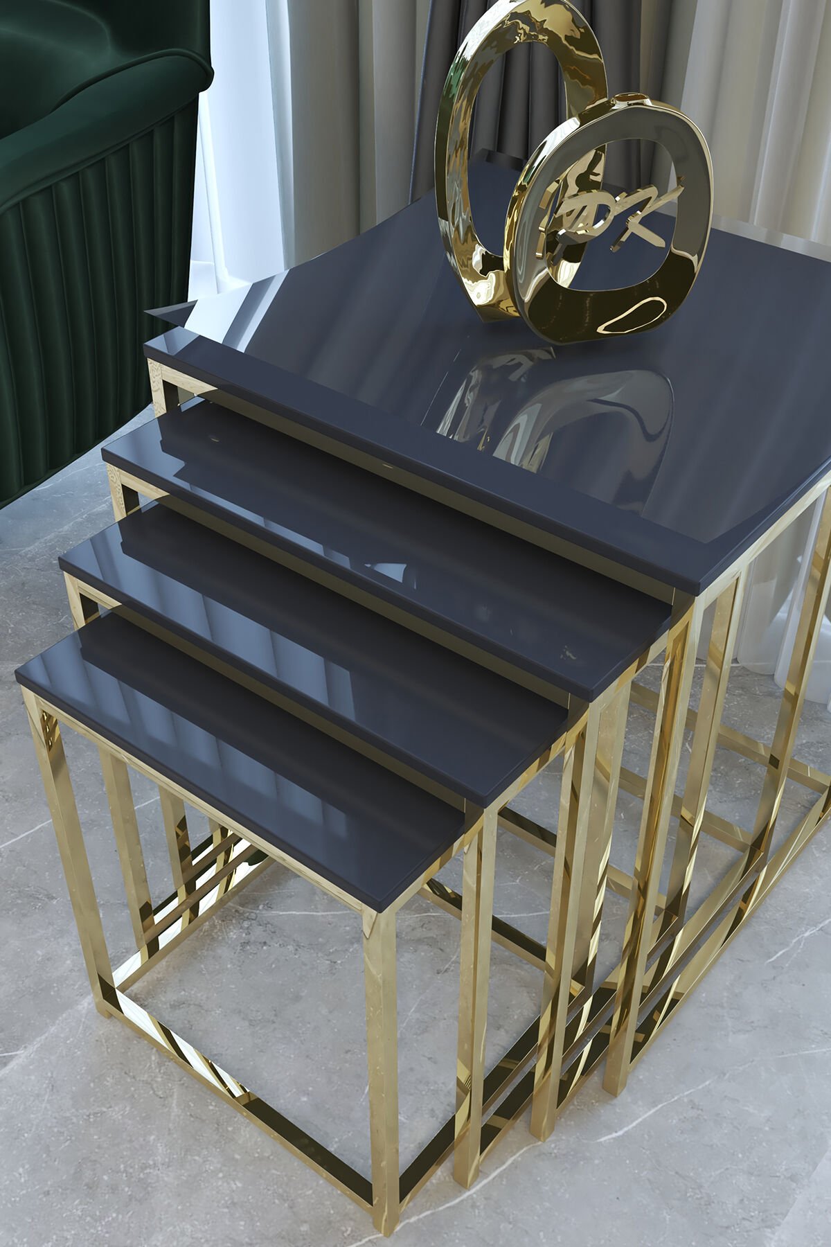 Duru 4'lü Kare Zigon Sehpa Seti Gold Ayak, Antrasit Mdf