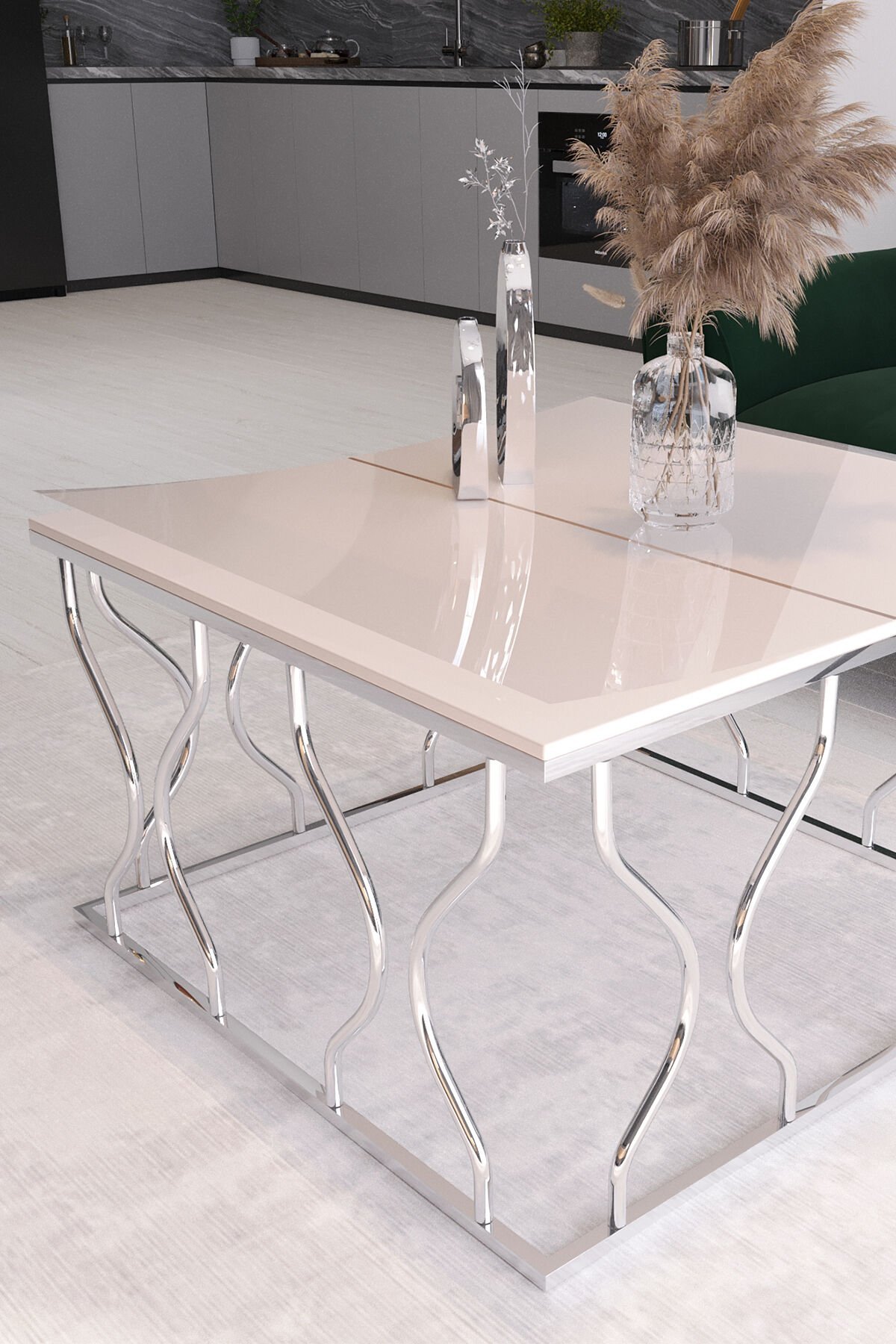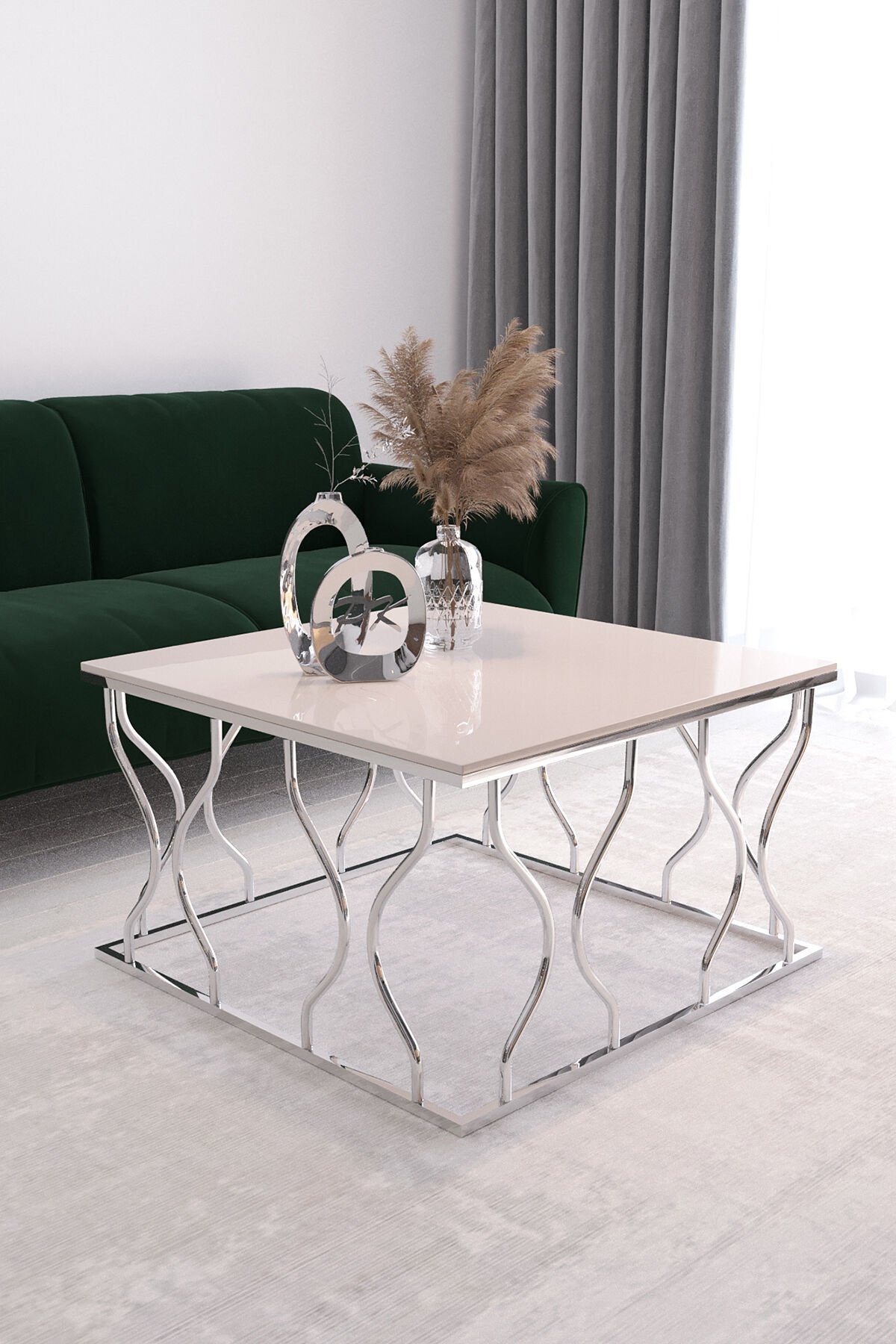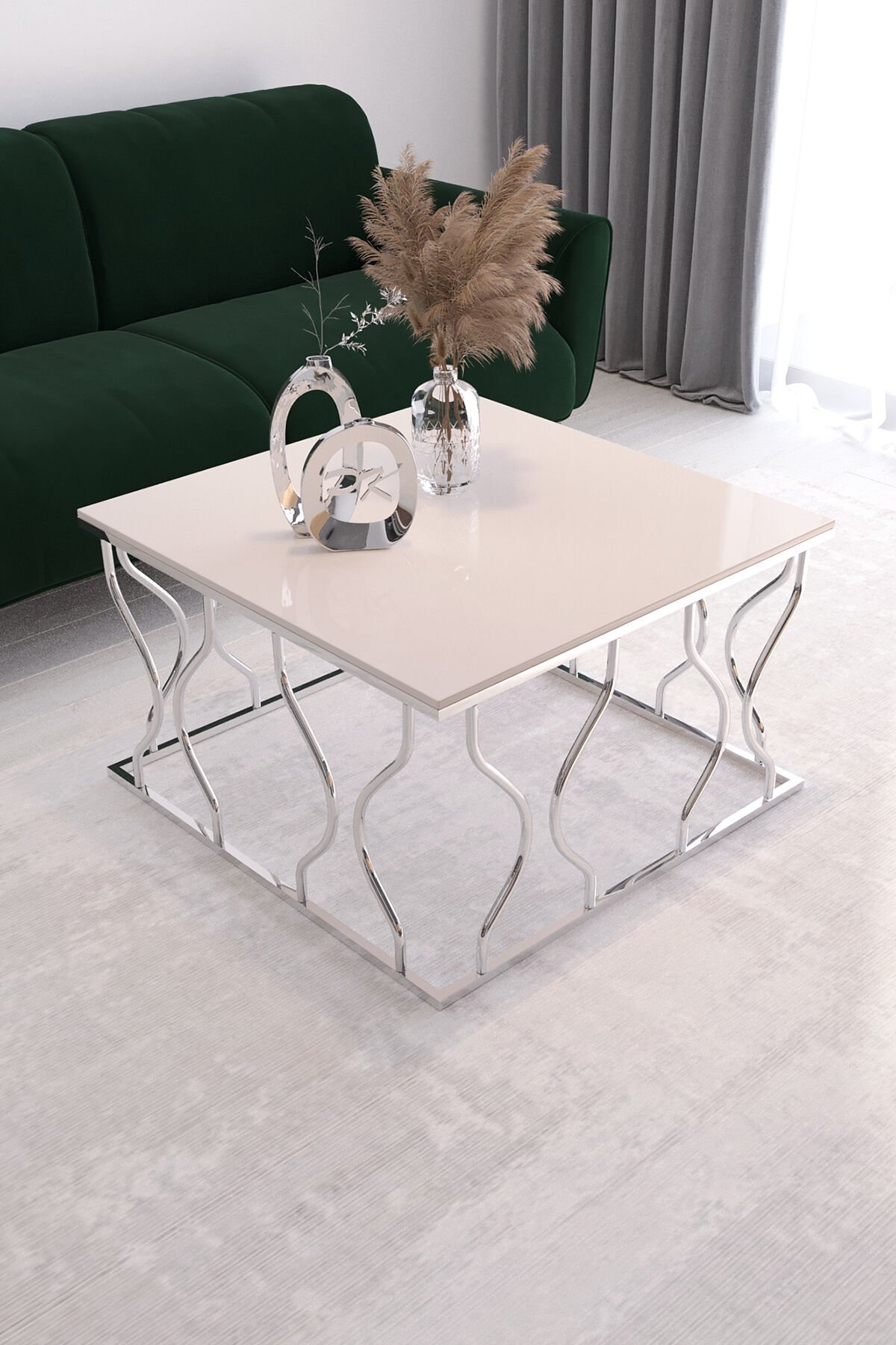 Hayal Orta Sehpa Gümüş Ayak, Krem Mdf